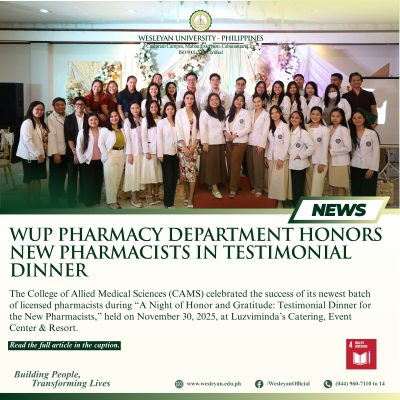 He reported that twenty-four alumni of the Bachelor of Science in Pharmacy program successfully passed the exam as released by the Professional Regulation Commission (PRC) on November 21, 2025. While 21 of WUP’s 22 first-time examinees passed, earning the University a 95.45% first-time taker performance rate, which is 7.41% higher than the national average. He added that three repeat takers also passed, resulting in an overall performance rate of 92.31%, exceeding the national overall average by 11.74%.